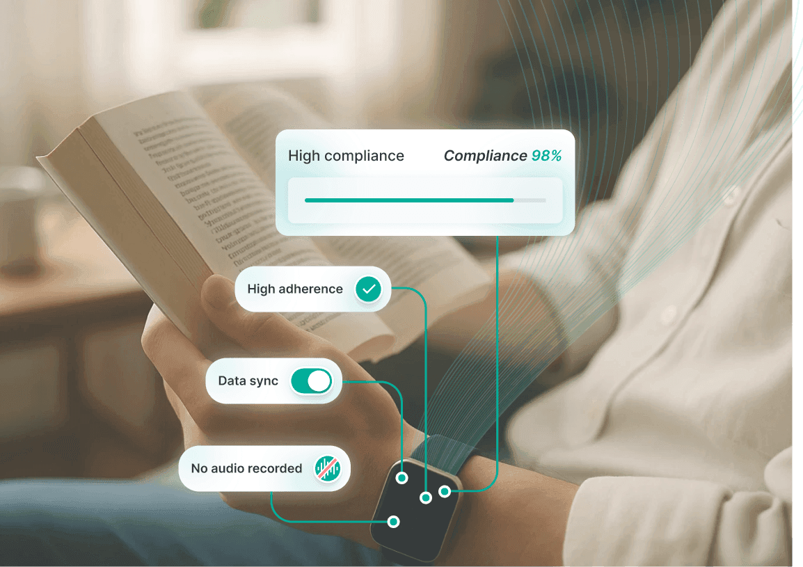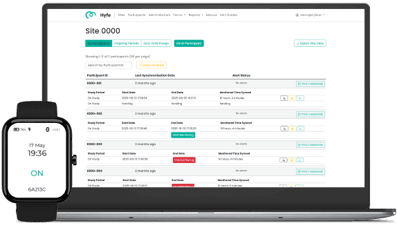 Hyfe’s watch is a familiar, convenient form factor that appeals to users of all tech literacy levels and requires minimal participant interaction. Its simplicity and ease of use ensure participant compliance and data collection success.